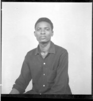 855. EAP449/2/28/855 Reference (shelfmark): EAP449/2/28/855 Title: A man wearing a shirt sitting face-forward in the studio. Collection Area: Endangered Archives Programme Languages: Not applicable Date Range: 2nd half od the 20th century Extent: 1 TIFF image