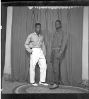 857. EAP449/2/28/857 Reference (shelfmark): EAP449/2/28/857 Title: Two men wearing shirts and pants standing in profile in the studio. Collection Area: Endangered Archives Programme Languages: Not applicable Date Range: 2nd half od the 20th century Extent: 1 TIFF image