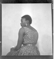859. EAP449/2/28/859 Reference (shelfmark): EAP449/2/28/859 Title: A woman wearing a dress facing backwards, sitting in profile in the studio. Collection Area: Endangered Archives Programme Languages: Not applicable Date Range: 2nd half od the 20th century Extent: 1 TIFF image
