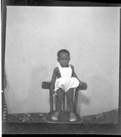 870. EAP449/2/28/870 Reference (shelfmark): EAP449/2/28/870 Title: A little boy wearing overalls standing face-forward on a chair in the studio. Collection Area: Endangered Archives Programme Languages: Not applicable Date Range: 2nd half od the 20th century Extent: 1 TIFF image