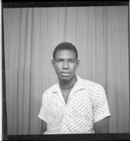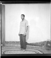 871. EAP449/2/28/871 Reference (shelfmark): EAP449/2/28/871 Title: A man wearing a shirt and pants standing in profile in the studio. Collection Area: Endangered Archives Programme Languages: Not applicable Date Range: 2nd half od the 20th century Extent: 1 TIFF image