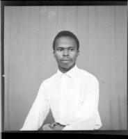879. EAP449/2/28/879 Reference (shelfmark): EAP449/2/28/879 Title: A man wearing a shirt sitting face-forward in the studio. Collection Area: Endangered Archives Programme Languages: Not applicable Date Range: 2nd half od the 20th century Extent: 1 TIFF image
