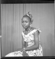 875. EAP449/2/28/875 Reference (shelfmark): EAP449/2/28/875 Title: A girl wearing a dress, head wrap, and necklace sitting in profile in the studio. Collection Area: Endangered Archives Programme Languages: Not applicable Date Range: 2nd half od the 20th century Extent: 1 TIFF image