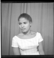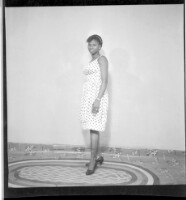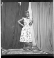 878. EAP449/2/28/878 Reference (shelfmark): EAP449/2/28/878 Title: A girl wearing a dress and necklace standing in profile in the studio. Collection Area: Endangered Archives Programme Languages: Not applicable Date Range: 2nd half od the 20th century Extent: 1 TIFF image