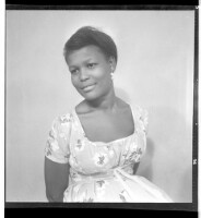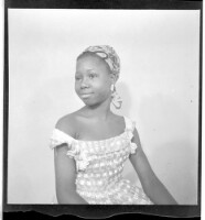 121. EAP449/2/29/121 Reference (shelfmark): EAP449/2/29/121 Title: A girl wearing a dress and head wrap sitting in profile in the studio. Collection Area: Endangered Archives Programme Languages: Not applicable Date Range: 2nd half od the 20th century Extent: 1 TIFF image