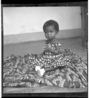 131. EAP449/2/29/131 Reference (shelfmark): EAP449/2/29/131 Title: A little girl wearing a dress sitting in profile on a pagne in the studio. Collection Area: Endangered Archives Programme Languages: Not applicable Date Range: 2nd half od the 20th century Extent: 1 TIFF image