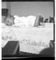 134. EAP449/2/29/134 Reference (shelfmark): EAP449/2/29/134 Title: A child laying in profile on a table in a bedroom. Collection Area: Endangered Archives Programme Languages: Not applicable Date Range: 2nd half od the 20th century Extent: 1 TIFF image