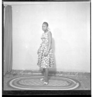 139. EAP449/2/29/139 Reference (shelfmark): EAP449/2/29/139 Title: A girl wearing a dress standing in profile in the studio. Collection Area: Endangered Archives Programme Languages: Not applicable Date Range: 2nd half od the 20th century Extent: 1 TIFF image