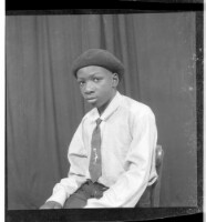 171. EAP449/2/29/171 Reference (shelfmark): EAP449/2/29/171 Title: A boy wearing a shirt, tie, and hat sitting in profile in the studio. Collection Area: Endangered Archives Programme Languages: Not applicable Date Range: 2nd half od the 20th century Extent: 1 TIFF image