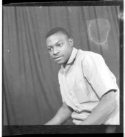 179. EAP449/2/29/179 Reference (shelfmark): EAP449/2/29/179 Title: A man wearing a shirt, pants, and beret standing in profile in the studio. Collection Area: Endangered Archives Programme Languages: Not applicable Date Range: 2nd half od the 20th century Extent: 1 TIFF image