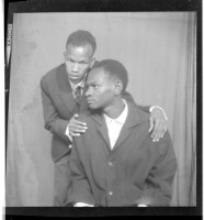 203. EAP449/2/29/203 Reference (shelfmark): EAP449/2/29/203 Title: Two men wearing suits, one sitting in profile in front of the other bending over face-forward in the studio. Collection Area: Endangered Archives Programme Languages: Not applicable Date Range: 2nd half od the 20th century Extent: 1 TIFF image