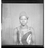 210. EAP449/2/29/210 Reference (shelfmark): EAP449/2/29/210 Title: A girl wearing a dress, head wrap, and necklace sitting face-forward in the studio. Collection Area: Endangered Archives Programme Languages: Not applicable Date Range: 2nd half od the 20th century Extent: 1 TIFF image
