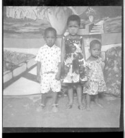 276. EAP449/2/29/276 Reference (shelfmark): EAP449/2/29/276 Title: Two little girls wearing dresses and necklaces with a little boy wearing a shirt and shorts, all standing face-forward in the studio. Collection Area: Endangered Archives Programme Languages: Not applicable Date Range: 2nd half od the 20th century Extent: 1 TIFF image