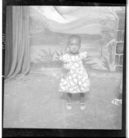 280. EAP449/2/29/280 Reference (shelfmark): EAP449/2/29/280 Title: A little girl wearing a dress standing face-forward in a studio decorated with clouds and flowers. Collection Area: Endangered Archives Programme Languages: Not applicable Date Range: 2nd half od the 20th century Extent: 1 TIFF image