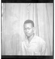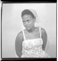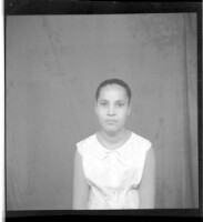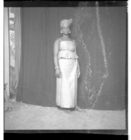 288. EAP449/2/29/288 Reference (shelfmark): EAP449/2/29/288 Title: A woman wearing a dress, pagne, and head wrap standing face-forward in the studio. Collection Area: Endangered Archives Programme Languages: Not applicable Date Range: 2nd half od the 20th century Extent: 1 TIFF image
