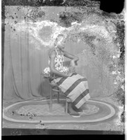 348. EAP449/2/29/348 Reference (shelfmark): EAP449/2/29/348 Title: A girl wearing a dress, pagne, and head wrap sitting in profile on a chair in the studio. Collection Area: Endangered Archives Programme Languages: Not applicable Date Range: 2nd half od the 20th century Extent: 1 TIFF image