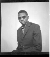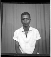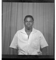 A woman wearing a large dress, head wrap, and necklace holding a child on her lap next to a girl wearing a dress and head wrap, both sitting face-forward in front of a man wearing a shirt and pants next to a boy wearing a shirt, shorts, and hat, both stan