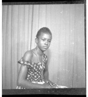 423. EAP449/2/29/423 Reference (shelfmark): EAP449/2/29/423 Title: A girl wearing a dress and necklace sitting in profile in the studio. Collection Area: Endangered Archives Programme Languages: Not applicable Date Range: 2nd half od the 20th century Extent: 1 TIFF image