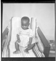 428. EAP449/2/29/428 Reference (shelfmark): EAP449/2/29/428 Title: A little girl wearing a dress sitting in profile on a chair in the studio. Collection Area: Endangered Archives Programme Languages: Not applicable Date Range: 2nd half od the 20th century Extent: 1 TIFF image
