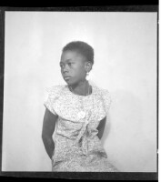 426. EAP449/2/29/426 Reference (shelfmark): EAP449/2/29/426 Title: Two girls wearing dresses, one wearing a necklace sitting in profile in front of the other standing in profile in the studio. Collection Area: Endangered Archives Programme Languages: Not applicable Date Range: 2nd half od the 20th century Extent: 1 TIFF image
