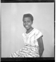 430. EAP449/2/29/430 Reference (shelfmark): EAP449/2/29/430 Title: A girl wearing a shirt, skirt, and necklace sitting in profile in the studio. Collection Area: Endangered Archives Programme Languages: Not applicable Date Range: 2nd half od the 20th century Extent: 1 TIFF image