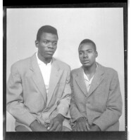 445. EAP449/2/29/445 Reference (shelfmark): EAP449/2/29/445 Title: Two men: one wearing a shirt and pants next to the other wearing a boubou, both sitting face-forward in the studio. Collection Area: Endangered Archives Programme Languages: Not applicable Date Range: 2nd half od the 20th century Extent: 1 TIFF image