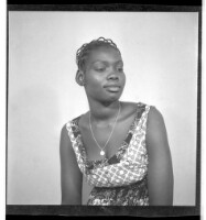 448. EAP449/2/29/448 Reference (shelfmark): EAP449/2/29/448 Title: A girl wearing a dress and necklace sitting face-forward in the studio. Collection Area: Endangered Archives Programme Languages: Not applicable Date Range: 2nd half od the 20th century Extent: 1 TIFF image