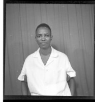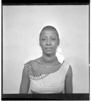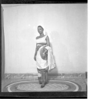 462. EAP449/2/29/462 Reference (shelfmark): EAP449/2/29/462 Title: A woman wearing a dress, pagne, and head wrap standing in profile in the studio. Collection Area: Endangered Archives Programme Languages: Not applicable Date Range: 2nd half od the 20th century Extent: 1 TIFF image