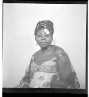 461. EAP449/2/29/461 Reference (shelfmark): EAP449/2/29/461 Title: A woman wearing a dress and head wrap sitting face-forward in the studio. Collection Area: Endangered Archives Programme Languages: Not applicable Date Range: 2nd half od the 20th century Extent: 1 TIFF image