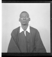 469. EAP449/2/29/469 Reference (shelfmark): EAP449/2/29/469 Title: A man wearing a boubou sitting face-forward in the studio. Collection Area: Endangered Archives Programme Languages: Not applicable Date Range: 2nd half od the 20th century Extent: 1 TIFF image