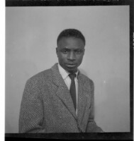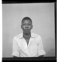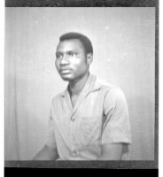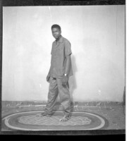 499. EAP449/2/29/499 Reference (shelfmark): EAP449/2/29/499 Title: A man wearing a shirt and pants standing in profile in the studio. Collection Area: Endangered Archives Programme Languages: Not applicable Date Range: 2nd half od the 20th century Extent: 1 TIFF image