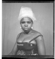493. EAP449/2/29/493 Reference (shelfmark): EAP449/2/29/493 Title: A woman wearing a dress and head wrap sitting face-forward in the studio. Collection Area: Endangered Archives Programme Languages: Not applicable Date Range: 2nd half od the 20th century Extent: 1 TIFF image