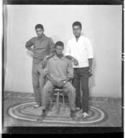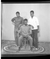 498. EAP449/2/29/498 Reference (shelfmark): EAP449/2/29/498 Title: Three men wearing shirts and pants, one sitting face-forward in front of the other two standing in profile in the studio. Collection Area: Endangered Archives Programme Languages: Not applicable Date Range: 2nd half od the 20th century Extent: 1 TIFF image