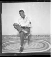 502. EAP449/2/29/502 Reference (shelfmark): EAP449/2/29/502 Title: A man wearing a shirt and pants sitting in profile in the studio. Collection Area: Endangered Archives Programme Languages: Not applicable Date Range: 2nd half od the 20th century Extent: 1 TIFF image