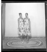 507. EAP449/2/29/507 Reference (shelfmark): EAP449/2/29/507 Title: Two girls wearing matching dresses and necklaces standing in profile in the studio. Collection Area: Endangered Archives Programme Languages: Not applicable Date Range: 2nd half od the 20th century Extent: 1 TIFF image