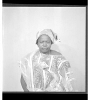 508. EAP449/2/29/508 Reference (shelfmark): EAP449/2/29/508 Title: A woman wearing a dress, head wrap, and necklace sitting face-forward in the studio. Collection Area: Endangered Archives Programme Languages: Not applicable Date Range: 2nd half od the 20th century Extent: 1 TIFF image