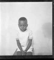 510. EAP449/2/29/510 Reference (shelfmark): EAP449/2/29/510 Title: A boy wearing a shirt and shorts sitting face-forward in the studio. Collection Area: Endangered Archives Programme Languages: Not applicable Date Range: 2nd half od the 20th century Extent: 1 TIFF image