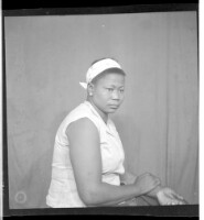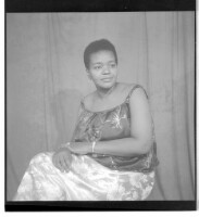 641. EAP449/2/29/641 Reference (shelfmark): EAP449/2/29/641 Title: A woman wearing a dress and pagne sitting in profile in the studio. Collection Area: Endangered Archives Programme Languages: Not applicable Date Range: 2nd half od the 20th century Extent: 1 TIFF image