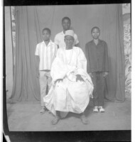 647. EAP449/2/29/647 Reference (shelfmark): EAP449/2/29/647 Title: A man wearing a boubou and hat sitting face-forward in front of three boys wearing shirts and pants standing face-forward in the studio. Collection Area: Endangered Archives Programme Languages: Not applicable Date Range: 2nd half od the 20th century Extent: 1 TIFF image