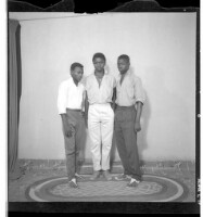 739. EAP449/2/29/739 Reference (shelfmark): EAP449/2/29/739 Title: Three boys wearing shirts and pants all standing, one face-forward and two in profile in the studio. Collection Area: Endangered Archives Programme Languages: Not applicable Date Range: 2nd half od the 20th century Extent: 1 TIFF image
