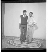 116. EAP449/2/30/116 Reference (shelfmark): EAP449/2/30/116 Title: Two men wearing shirts and pants, one wearing a vest and tie, both standing in profile in the studio. Collection Area: Endangered Archives Programme Languages: Not applicable Date Range: 2nd half od the 20th century Extent: 1 TIFF image
