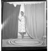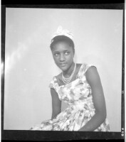 207. EAP449/2/30/207 Reference (shelfmark): EAP449/2/30/207 Title: A girl wearing a dress, head wrap, and necklace standing in profile in the studio. Collection Area: Endangered Archives Programme Languages: Not applicable Date Range: 2nd half od the 20th century Extent: 1 TIFF image