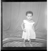 231. EAP449/2/30/231 Reference (shelfmark): EAP449/2/30/231 Title: A little girl wearing a dress standing in profile in the studio. Collection Area: Endangered Archives Programme Languages: Not applicable Date Range: 2nd half od the 20th century Extent: 1 TIFF image
