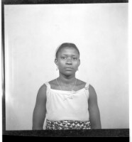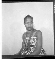 237. EAP449/2/30/237 Reference (shelfmark): EAP449/2/30/237 Title: A girl wearing a dress, head wrap, and necklace sitting face-forward in the studio. Collection Area: Endangered Archives Programme Languages: Not applicable Date Range: 2nd half od the 20th century Extent: 1 TIFF image