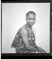365. EAP449/2/30/365 Reference (shelfmark): EAP449/2/30/365 Title: A woman wearing a dress, pagne, and necklace sitting in profile in the studio. Collection Area: Endangered Archives Programme Languages: Not applicable Date Range: 2nd half od the 20th century Extent: 1 TIFF image
