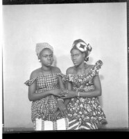 399. EAP449/2/30/399 Reference (shelfmark): EAP449/2/30/399 Title: Two women wearing dresses and head wraps, one wearing a necklace, both standing, one face-forward and the other in profile in the studio. Collection Area: Endangered Archives Programme Languages: Not applicable Date Range: 2nd half od the 20th century Extent: 1 TIFF image