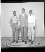 398. EAP449/2/30/398 Reference (shelfmark): EAP449/2/30/398 Title: A man wearing a jacket, tie, and pants between two men wearing shirts and pants standing face-forward in the studio. Collection Area: Endangered Archives Programme Languages: Not applicable Date Range: 2nd half od the 20th century Extent: 1 TIFF image