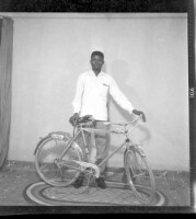 400. EAP449/2/30/400 Reference (shelfmark): EAP449/2/30/400 Title: A man wearing a shirt and pants standing face-forward and holding a bicycle in the studio. Collection Area: Endangered Archives Programme Languages: Not applicable Date Range: 2nd half od the 20th century Extent: 1 TIFF image