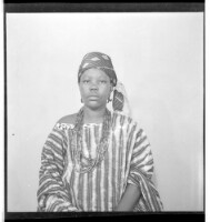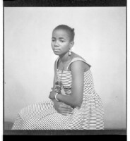 414. EAP449/2/30/414 Reference (shelfmark): EAP449/2/30/414 Title: A woman wearing a dress and necklaces sitting face-forward in the studio. Collection Area: Endangered Archives Programme Languages: Not applicable Date Range: 2nd half od the 20th century Extent: 1 TIFF image