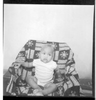 419. EAP449/2/30/419 Reference (shelfmark): EAP449/2/30/419 Title: A little boy wearing a t-shirt sitting face-forward in the studio. Collection Area: Endangered Archives Programme Languages: Not applicable Date Range: 2nd half od the 20th century Extent: 1 TIFF image